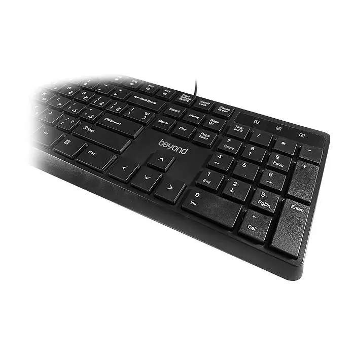 کیبورد بیاند مدل BK-2442 دارای 104 کلید است که شامل کلیدهای استاندارد و میانبر میشود. همچنین این کیبورد دارای پایه تنظیم ارتفاع است |