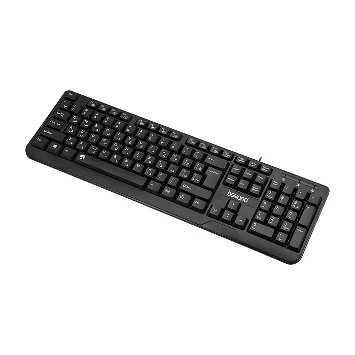 کیبورد بیاند مدل BK-3340 دارای **104 کلید** است که شامل **12 کلید فانکشن** میشود و همچنین دارای **پایه تنظیم ارتفاع** . |