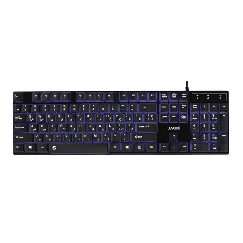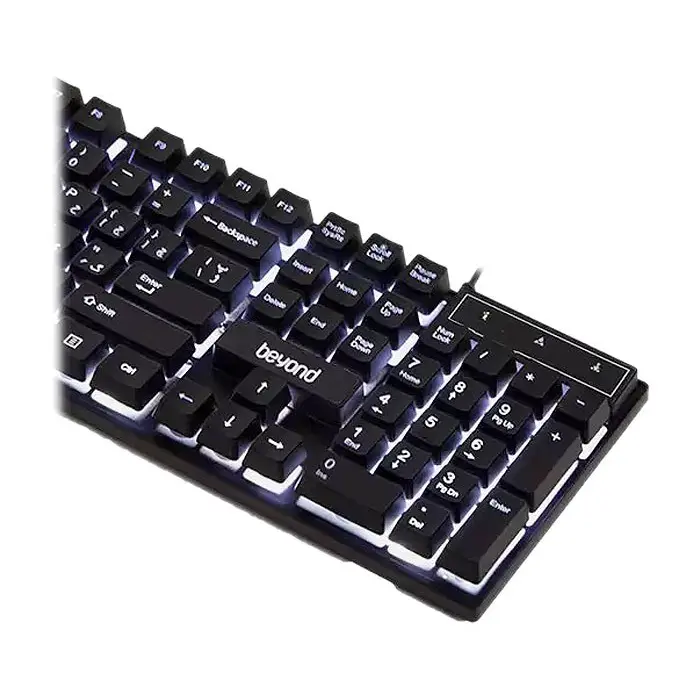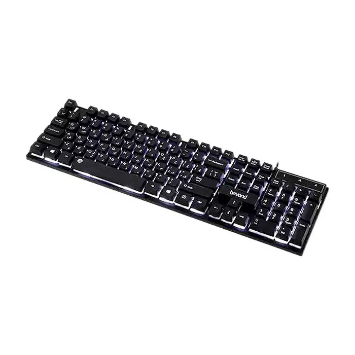 کیبورد بیاند مدل BK-7110 دارای 104 کلید است که شامل کلیدهای استاندارد و میانبر میشود. همچنین این کیبورد دارای پایه تنظیم ارتفاع است |