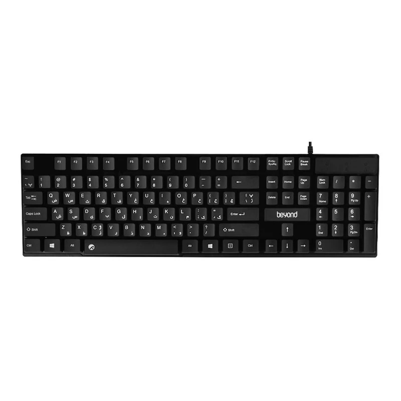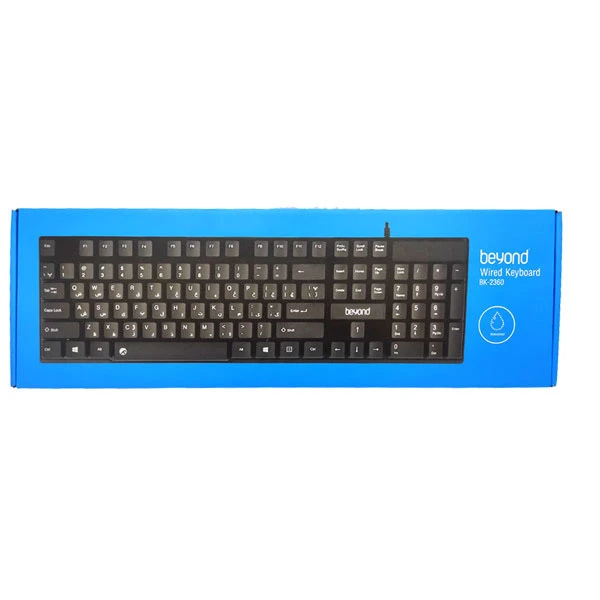 کیبورد بیاند مدل BK-2360 دارای 104 کلید است که شامل کلیدهای استاندارد و میانبر میشود. همچنین این کیبورد دارای قابلیت تنظیم ارتفاع است |
